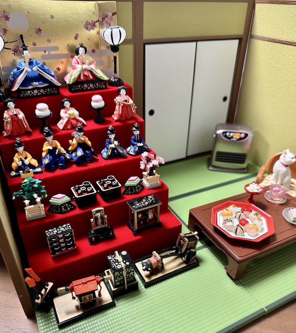 ひな祭りの段飾りが、そのままミニチュアになった